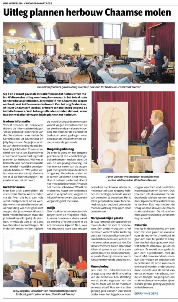 Uitleg plannen herbouw Chaamse molen
